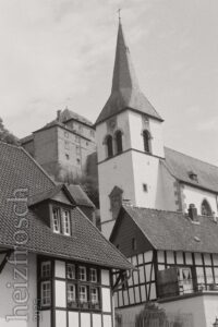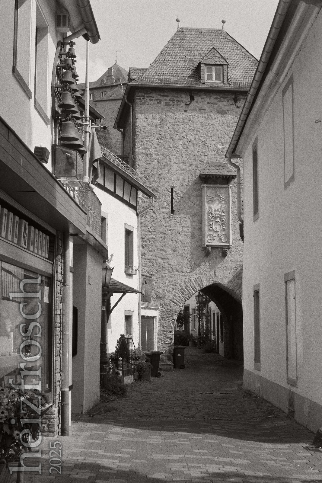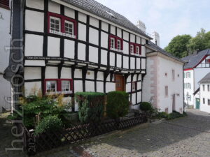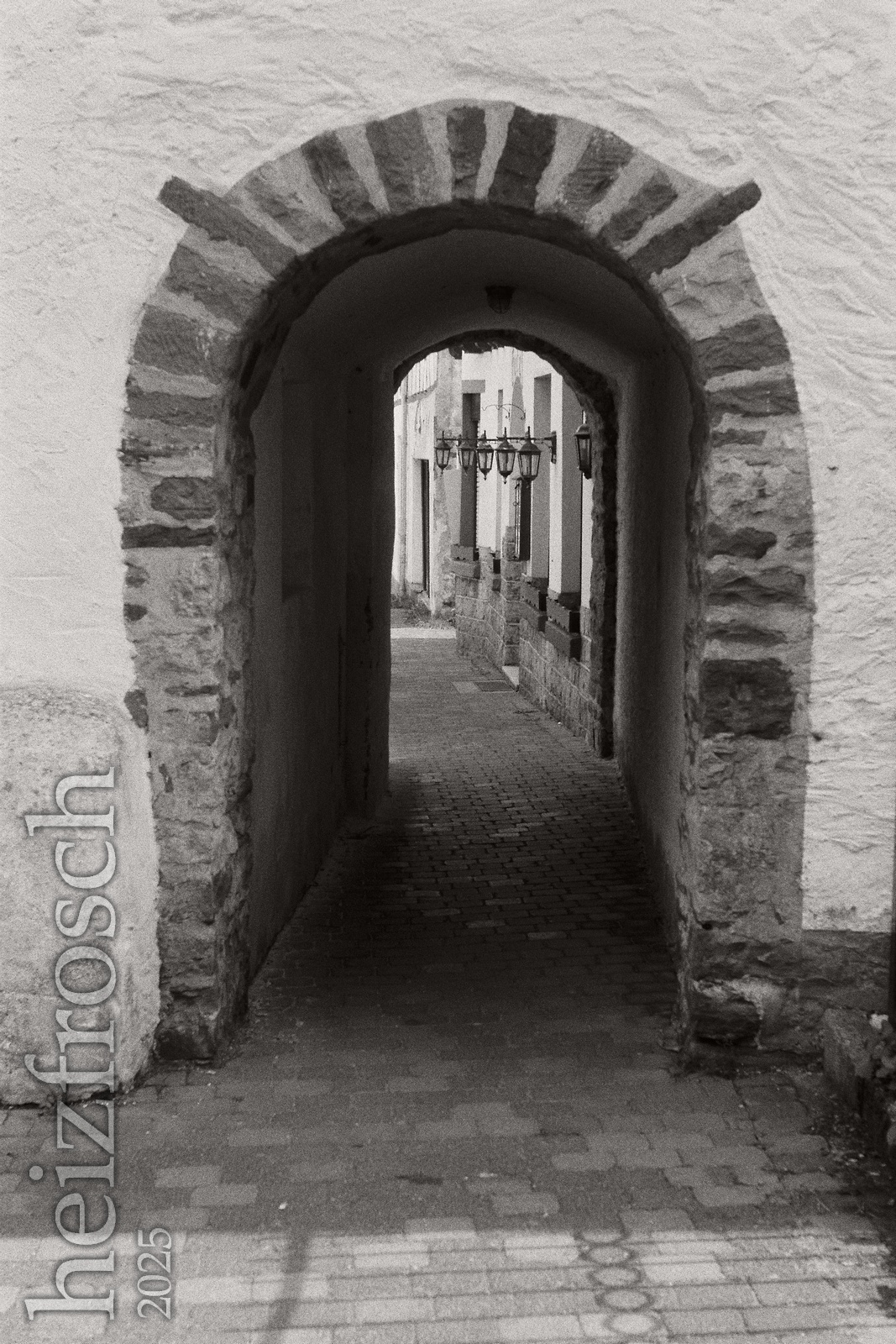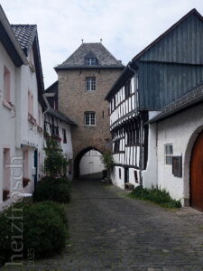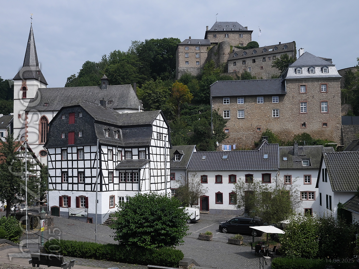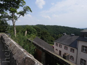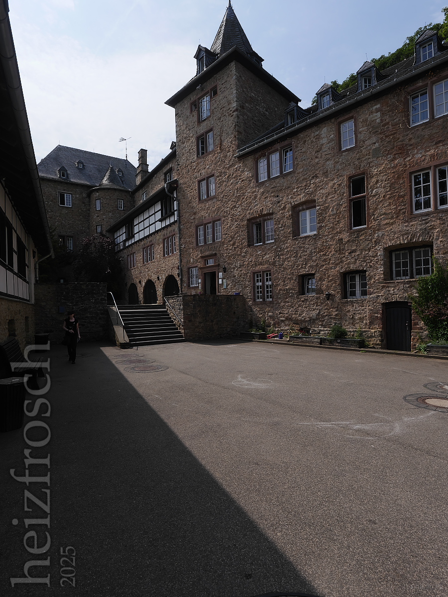 In Blankenheim gibt es auch eine weit oben gelegene Burg, die allerdings bis zum Beginn des 20. Jahrhunderts in Ruinen lag und nach späterem Wiederaufbau heute als Jugendherberge dient. Die Burg selbst kann mal deshalb nicht besichtigen, aber ein freundlicher Mitarbeiter winkt uns immerhin zu einem Besuch des Innenhofs.